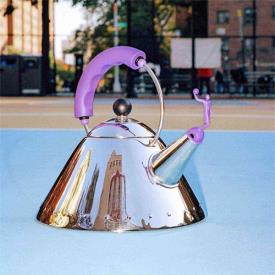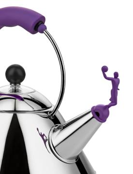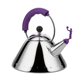 Alessi Design. Michael Graves Dimensions : Ø 22 x h 22,5 cm bouilloire en acier inoxydable 18/10 avec poignée et sifflet en PA, violet. Fond en acier magnétique compatible avec la cuisson par induction. Edition limitée à 9999 pièces numérotées. Capacité (cl) : 200.00