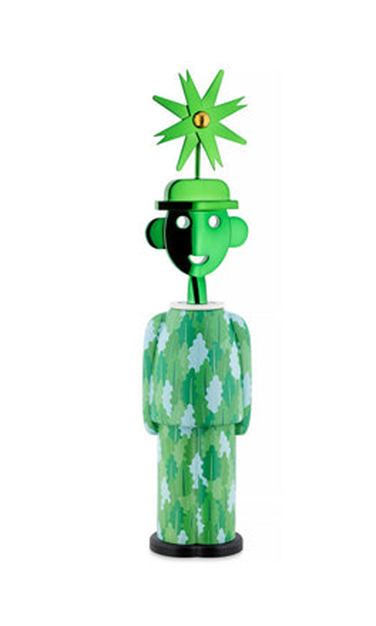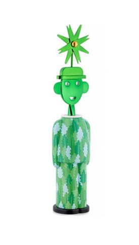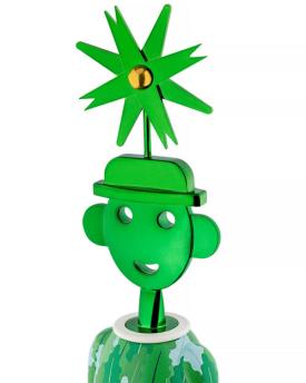 Alessi Design. Alessandro Mendini, Fulvia Mendini Dimensions : Ø 6 x h 21 cm Pour célébrer la paire iconique de tire-bouchons créée par son père Alessandro, Fulvia Mendini a imaginé un conte de fées se déroulant dans une forêt de chênes où les deux personnages dansent dans une quête sans fin de désirs et de secrets. Dans cette édition limitée à neuf exemplaires et une épreuve d’auteur, Alessandro M. porte un chapeau en forme de roue, rehaussé d'un traitement PVD exclusif dans les tons verts. Tire-bouchon en AlkiPaper® et zamac chromée, décor Fulvia Mendini. Accessoires en métal avec revêtement en PVD, vert, et laiton. Edition limitée à 9 pièces numérotées et 1 épreuve d’auteur.