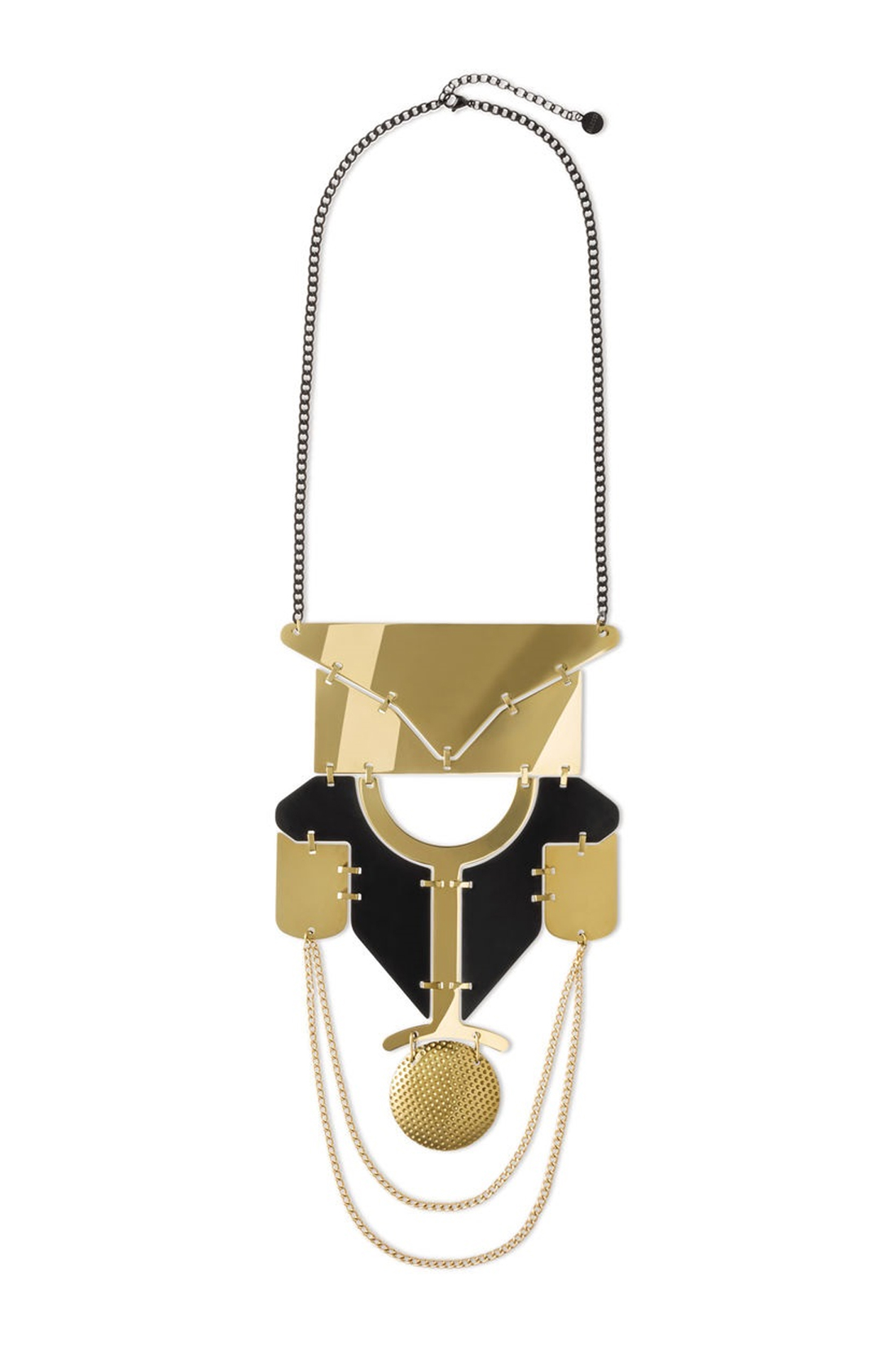 Alessi Design. Elena Salmistraro Dimensions : 11,5 x 36 cm Une collection de « bijoux d'atelier » embellie par des transformations sophistiquées du métal. Or et noir, ancestral et industriel, figuratif et abstrait: en créant la collection Venusia, Elena Salmistraro compose une interprétation totalement originale des formee archétypales des bijoux. collier en acier avec revêtement PVD, anallergique, or et noir. Edition limitée à 350 pièces numérotées et 3 épreuves d’auteur.