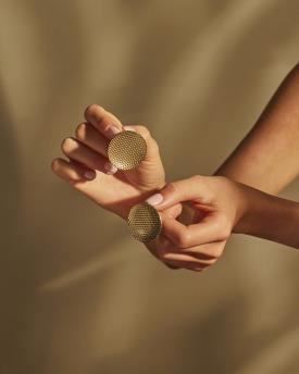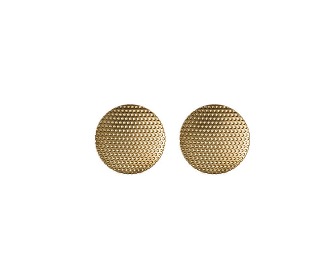 Alessi Designer Elena Salmistraro - Paire de boucles d'oreilles, Réf. ESAO2 1 Dimensions : Ø 3,5 cm Une collection de « bijoux d'atelier » embellie par des transformations sophistiquées du métal. Or et noir, ancestral et industriel, figuratif et abstrait: en créant la collection Venusia, Elena Salmistraro compose une interprétation totalement originale des formee archétypales des bijoux. Paire de boucles d'oreilles en acier avec revêtement PVD, anallergique, or.
