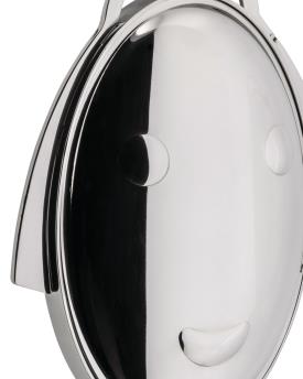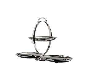 Alessi Design. Alessandro Mendini Dimensions : l 44 x h 27 x p 20 cm Alessandro Mendini réinterprète une typologie traditionnelle avec son design riche en suggestions artistiques : Anna Gong est un élégant présentoir à trois étages qui se transforme, lorsqu'il est fermé, en un fascinant portrait sculptural. Surtout pliable en acier inoxydable 18/10.