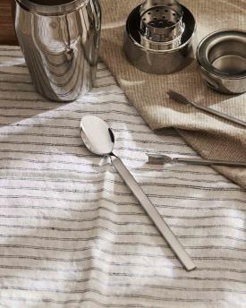 Design. Achille Castiglioni - Cuiller à long drink. 6 pièces, Réf. 4180/23 Dimensions : l 20 cm Cuiller à long drink en acier inoxydable 18/10 brillant à manche satiné.