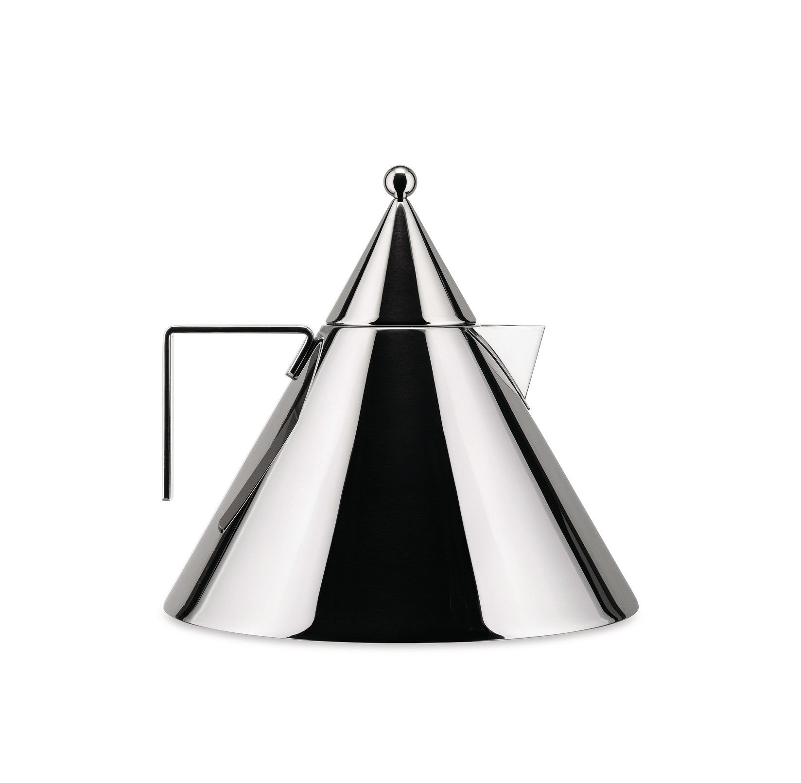 Alessi Design. Aldo Rossi - Bouilloire, Réf. 90017 Dimensions : Ø 22 x h 22 cm “Le Conique”, c'est la bouilloire inspirée de l'architecture créée par Aldo Rossi : réalisée en acier Inox 18/10, elle est la transformation de ses dessins géométriques en ustensile de cuisine, vite devenu une icône du design. Bouilloire en acier inoxydable 18/10. Fond en acier magnétique compatible avec la cuisson par induction.