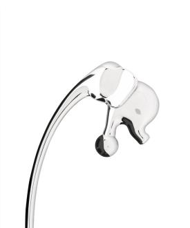 Alessi Designer Frédéric Gooris - Accroche sac, Réf. FGO05 Dimensions : L 12 x h ... x l 5 cm Crochet de table pour sac à main Jumbo a été dessiné par Frédéric Gooris. Il s’agit d’un petit éléphant jongleur, représenté en équilibre sur une boule. La trompe s’allonge et s’enroule en formant un crochet qui se place sous la table pour accueillir et soutenir des sacs de différentes formes et dimensions. La silhouette du gracieux éléphant reste bien visible sur la table, parfaitement équilibrée et à la verticale pendant l’utilisation de l’objet. accroche sac en acier inoxydable 18/10 brillant.