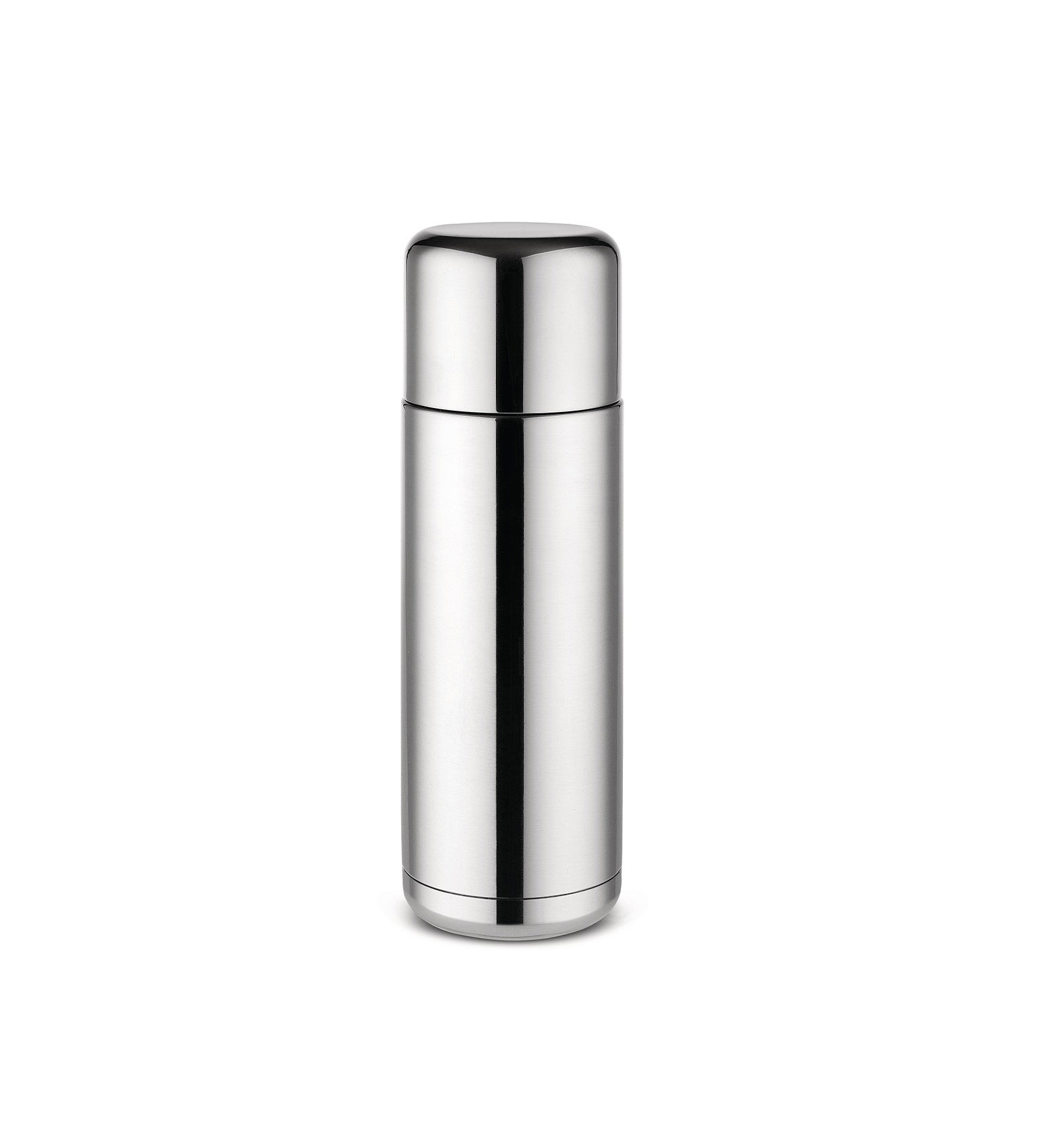 Design. Naoto Fukasawa, Thermos - Réf. NF04 Dimensions : Ø 6,4 x h 20 cm Bouteille isotherme à double paroi en acier inoxydable 18/10 brillant et résine thermoplastique.