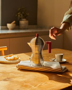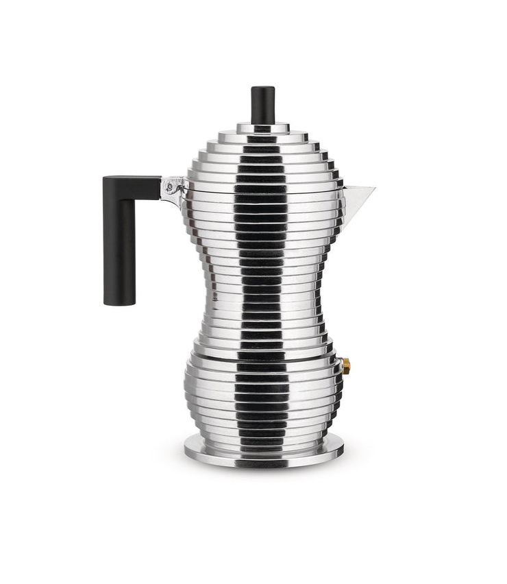 Alessi Designer Michele De Lucchi - Cafetière, Réf. MDL02/1 B Dimensions : l 12,5 x h 16,5 x p 12,5 cm Une moka révolutionnaire qui allie l'expérience d'Alessi dans le domaine de la conception à la technologie développée par illycaffè. Dessinée par Michele de Lucchi, Pulcina présente une petite innovation conceptuelle, fondamentale pourtant qui interrompt le flux au bon moment pour que le café n'ait pas un arrière-goût amer. Cela permet de mettre en valeur l'arôme rond et corsé de cette boisson. Le bec, qui rappelle le bec d'un poussin (d'où le nom de la cafetière), permet de retenir parfaitement la goutte. Cafetière espresso en fonte d'aluminium. Poignée et pommeau en PA. Capacité (cl): 7.00