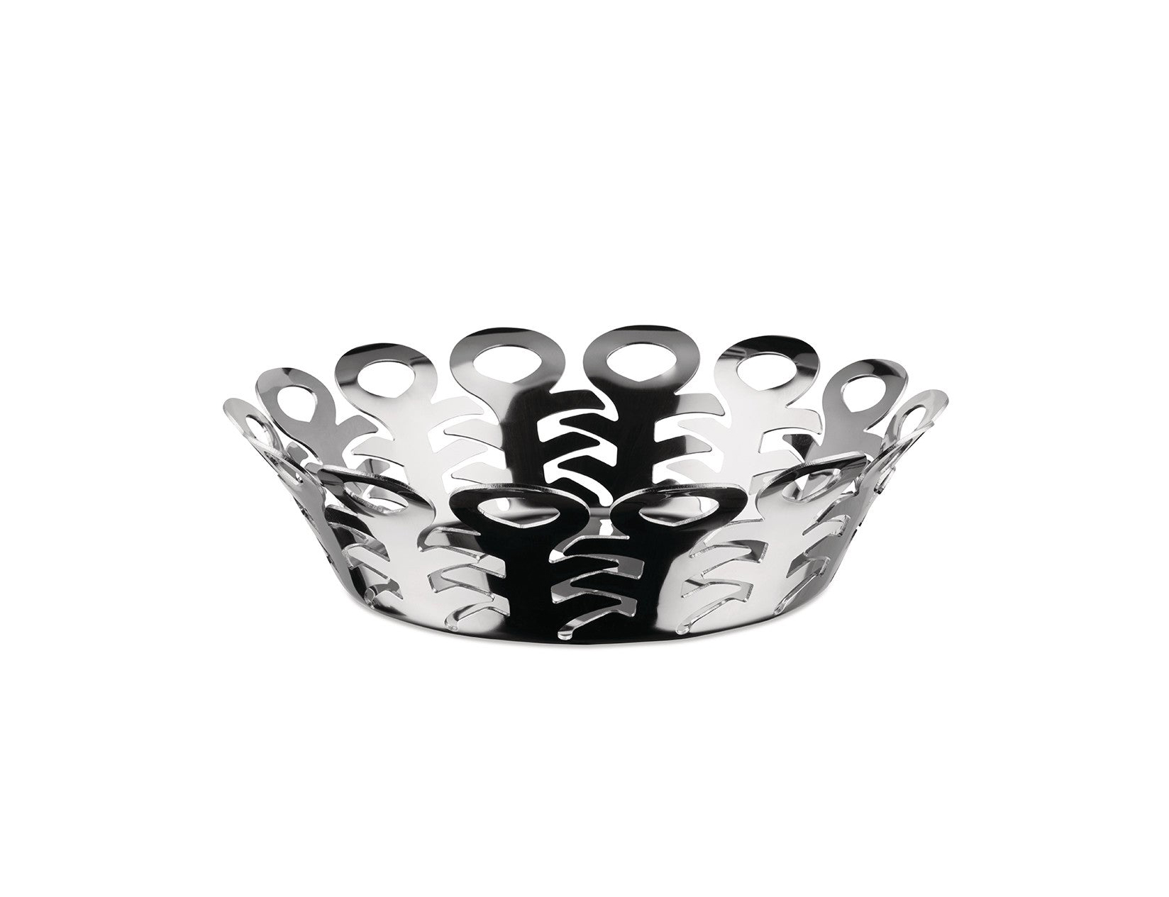 Alessi Design. Boucquillon and Maaoui - Corbeille, Réf. BM21/21 Dimensions : Ø 22 x h 6 cm Inspiré des corbeillesen osier traditionnels, Michel Boucquillon et Donia Maaoui ont créé un objet novateur et original qui joue avec charme sur les formes de cet artisanat traditionnel. Le corbeille Vimini se distingue par son design sophistiqué. Après avoir été découpé au laser, l'acier en feuille est moulé à travers une série d'étapes de production mécanique qui mettent à nouveau en valeur le savoir-faire des ateliers Alessi dans le traitement de ce métal. Corbeille ajourée en acier inoxydable 18/10.