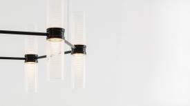 Artemide Design. Carlo Colombo, Code : 1780010A / 1780030A Dimensions : Ø 19,5 x h 31 cm L'élément modulaire est un double diffuseur cylindrique avec un corps central qui renferme les sources lumineuses et, au moyen de deux anneaux tournant sur le même axe, définit la position des corps d'éclairage voisins en positionnant les éléments structurels de connexion. Le diffuseur est en verre transparent soufflé à la bouche dans un moule aux bords ondulés dont les sommets sont ensuite polis pour créer une texture horizontale alternant bandes transparentes et opalines diffusantes. Ce travail sublime le diffuseur avec élégance, mais surtout, assure une diffusion lumineuse non éblouissante le long du corps cylindrique. lampe de table