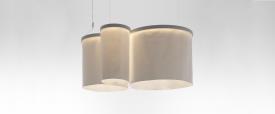 Ce système de suspension façonne les qualités de l'espace par croissance moléculaire, alliant absorption lumineuse et acoustique.