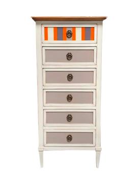 Dimensions : l 61 x h 129 x p 39 cm chiffonnier 6 tiroirs Meuble signé, de création, fabrication et finitions françaises Collection : Divers
