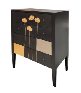 Meubles Batel Dimensions : l 75 x h 90 x p 41 cm commode Coquelicot 4 Tiroirs Création et fabrication française signée Collection : Divers Meuble signé, de création, fabrication et finitions françaises
