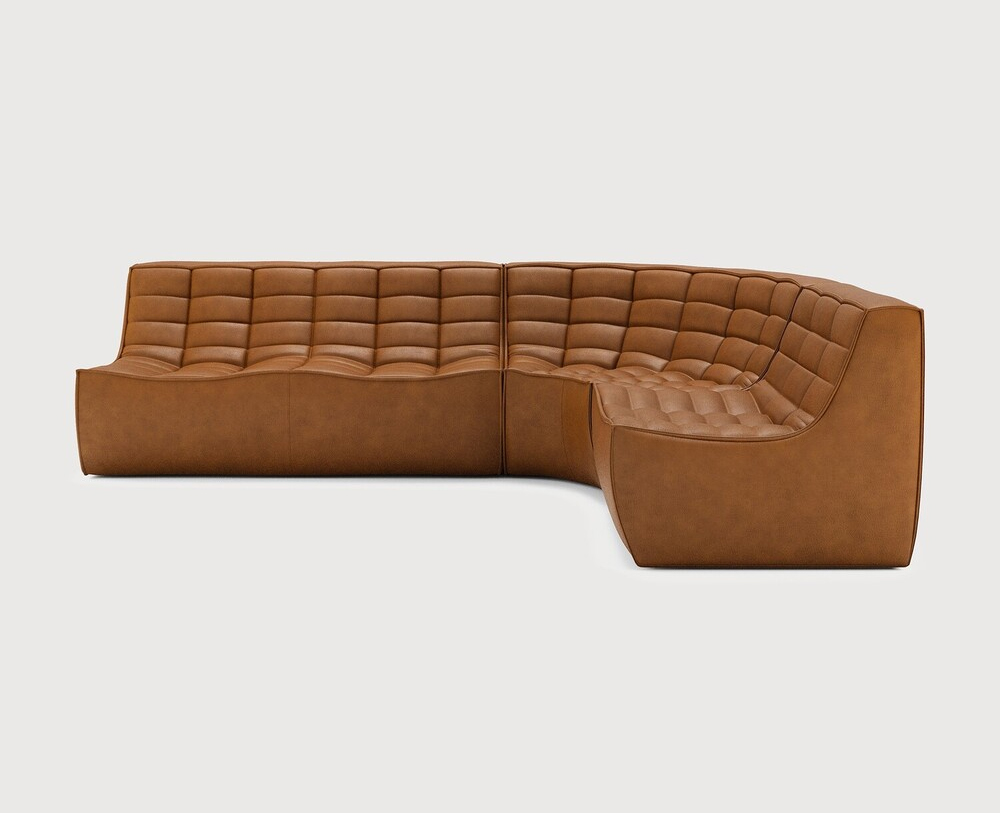 Ethnicraft Design. Jacques Deneef - Canapé modulaire N701 à partir de 7117 € Dimensions : l 260 x h 76 x p 200 cm Le canapé N701 offre un design chaleureux qui respire le confort et la détente. En combinant les modules aux dimensions variées, vous avez une infinité de possibilités dès lors qu'il s'agit de créer votre propre style d'intérieur. Conçu par Jacques Deneef, il est disponible en plusieurs couleurs et matières avec des options pré-configurées ou entièrement personnalisable. Composition canapé droit : module 3 places + module d'angle arrondi à 90° + module 2 places. Des connecteurs inclus pour relier les modules du canapé. 100% cuir aniline. Des variations de couleur peuvent se produire. canapé modulaire