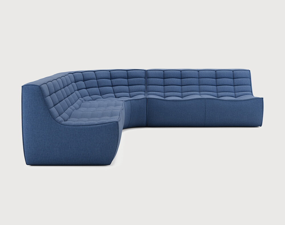 Composition canapé gauche : 2 modules 2 places + module d'angle arrondi à 90°. Des connecteurs inclus pour relier les modules du canapé.