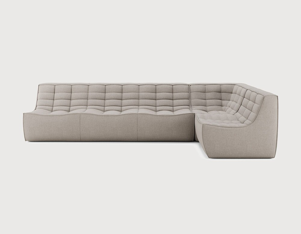 Ethnicraft Design. Jacques Deneef - Canapé modulaire N701 à partir de 5377 € Dimensions : l 301 x h 76 x p 171 cm Le canapé N701 offre un design chaleureux qui respire le confort et la détente. En combinant les modules aux dimensions variées, vous avez une infinité de possibilités dès lors qu'il s'agit de créer votre propre style d'intérieur. Conçu par Jacques Deneef, il est disponible en plusieurs couleurs et matières avec des options pré-configurées ou entièrement personnalisable. Composition canapé droit : module 3 places + module d'angle carré à 90° + module 1 place. Des connecteurs inclus pour relier les modules du canapé. Tissu réalisé à partir de coton recyclé avec des fibres supplémentaires pour des performances techniques. canapé modulaire