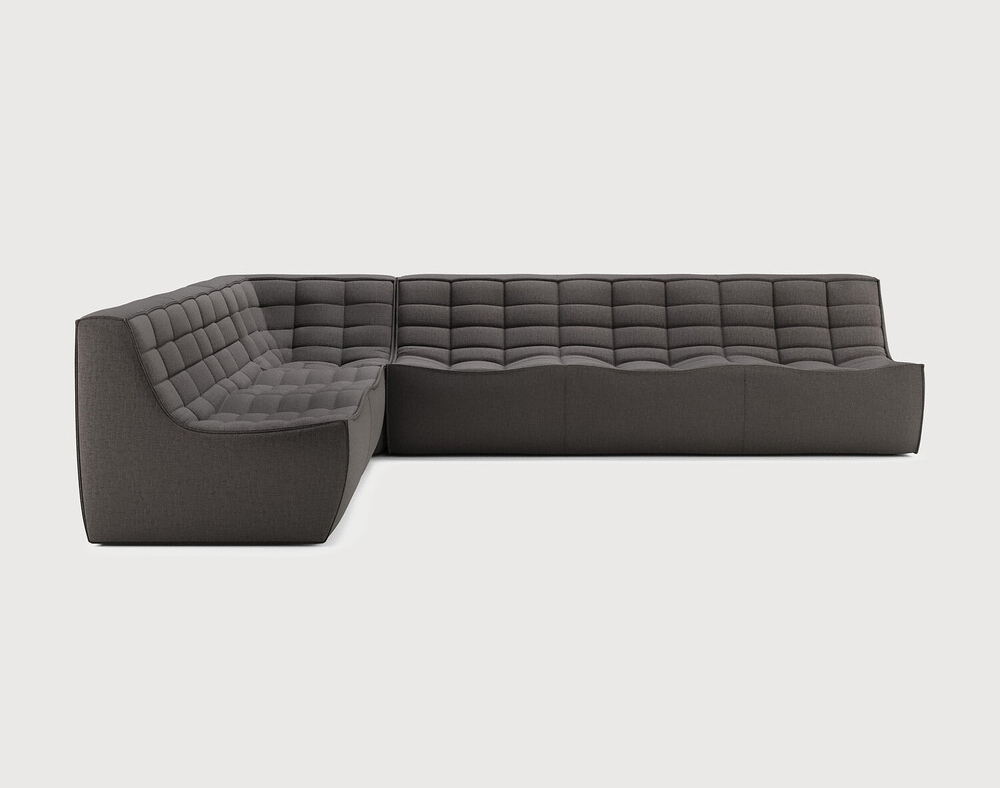 Composition canapé droit : module 3 places + module d'angle carré à 90° + module 2 places. Des connecteurs inclus pour relier les modules du canapé.