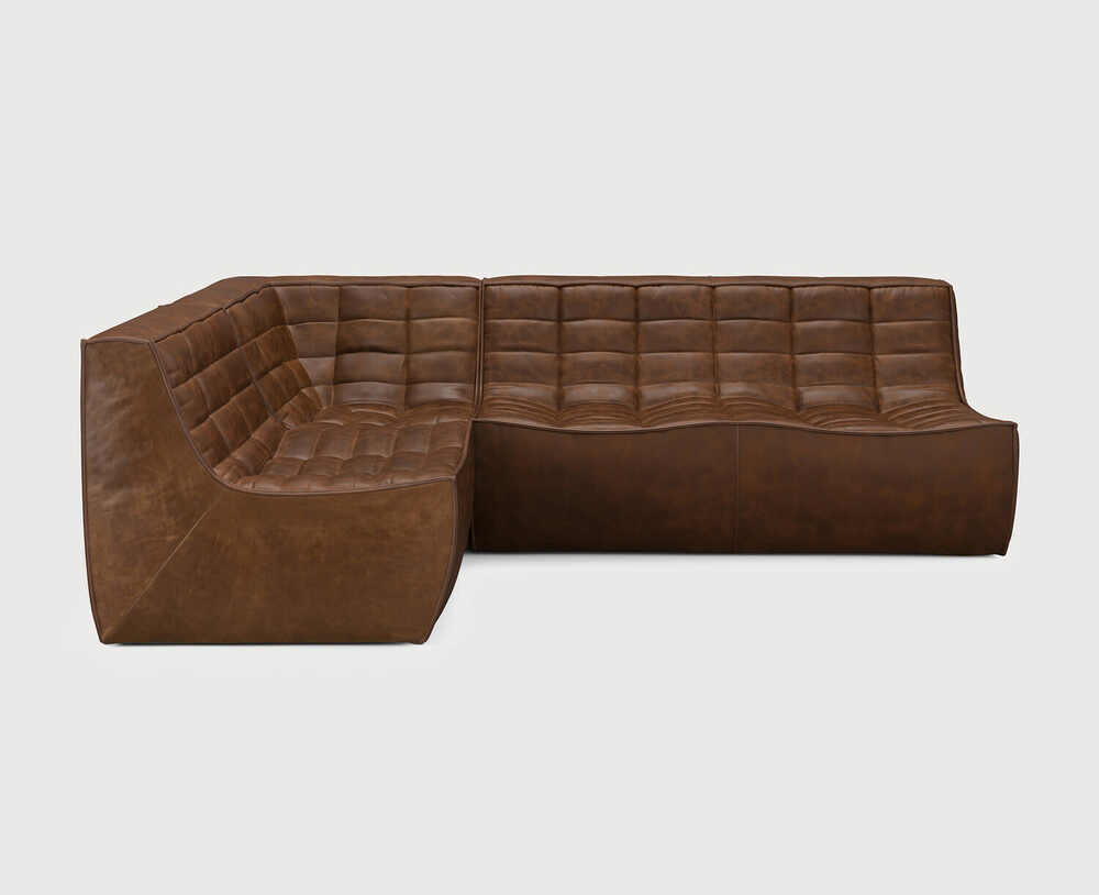 Composition canapé gauche : module 1 place + module d'angle carré à 90° + module 2 places. Des connecteurs pour relier les modules sont inclus.