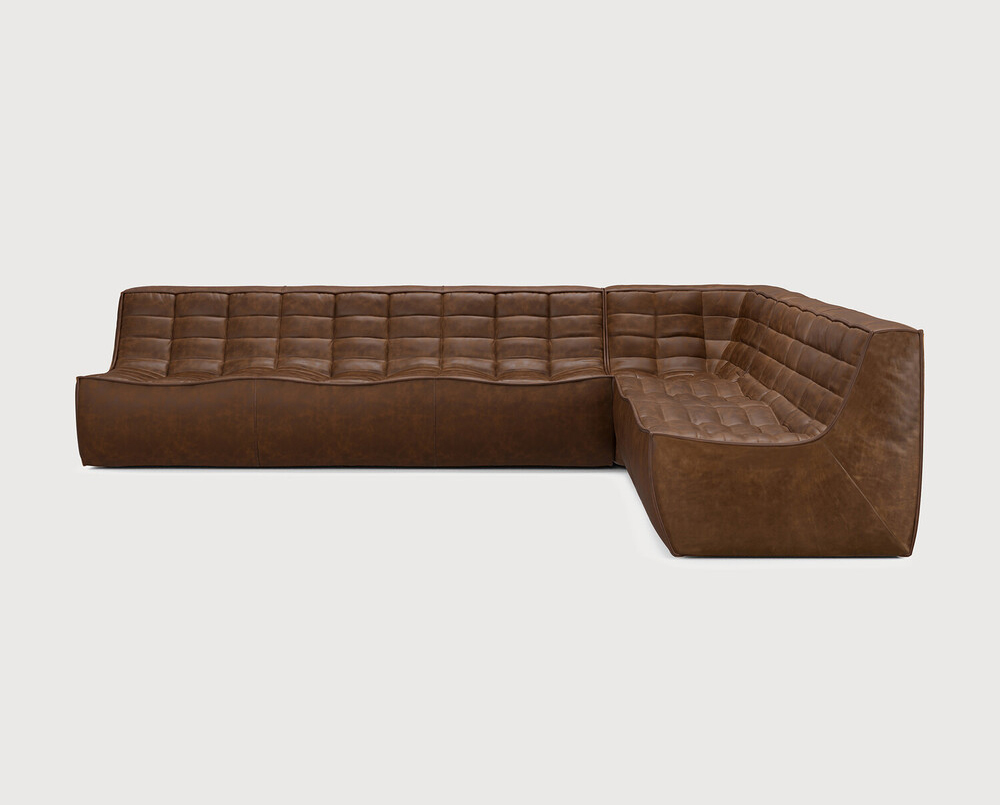 Ethnicraft Design. Jacques Deneef - Canapé modulaire N701 à partir de 7497 € Dimensions : l 301 x h 76 x p 171 cm Le canapé N701 offre un design chaleureux qui respire le confort et la détente. En combinant les modules aux dimensions variées, vous avez une infinité de possibilités dès lors qu'il s'agit de créer votre propre style d'intérieur. Conçu par Jacques Deneef, il est disponible en plusieurs couleurs et matières avec des options pré-configurées ou entièrement personnalisable. Composition canapé droit : module 3 places + module d'angle carré à 90° + module 1 place. Des connecteurs pour relier les modules sont inclus. 100% cuir aniline. Des variations de couleur peuvent se produire. canapé modulaire