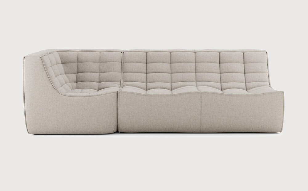 Composition canapé gauche : module 2 places + module d'angle carré à 90°. Des connecteurs inclus pour relier les modules du canapé.