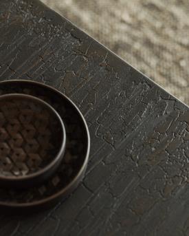 Renouant avec des techniques artistiques ancestrales, le relief de la surface de la table basse Stability est sculpté à la main par nos artisans hautement qualifiés. Les poudres minérales naturelles et les pigments de couleurs se mélangent pour donner à cette table sa finition unique. L'épaisseur du plateau crée un contraste évocateur avec la forme aérienne de son piétement métal. Ses lignes simples et sa hauteur standardisée permettent de révéler la beauté épurée du métal bien ouvragé.