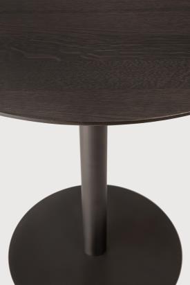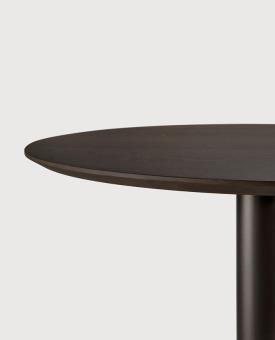 Le plateau de la table est en chêne massif avec une finition vernie teintée brun, avec un piétement en métal thermolaqué de couleur Dark Bronze.