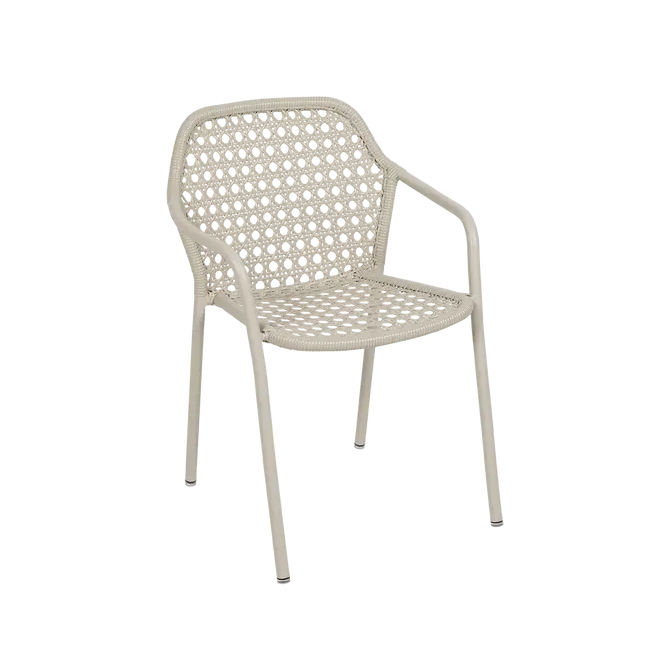 Fermob Design : Pascal Mourgue - (éco-participation 0,46 Euro) à partir de 349 € Dimensions : l 61,5 x h 85 x p 58 cm Couleur : Gris argile 4 couleurs disponibles Caractéristiques Poids : 3,4 kg Structure tube aluminium Assise fibre outdoor polyéthylène tressée Dossier fibre outdoor polyéthylène tressée Empilabilité 4 x bridge empilable extérieur outdoor métal