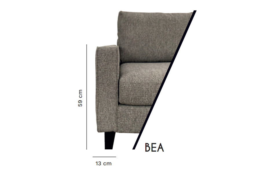 Les accoudoirs sont la note finale de votre canapé et détermineront le style de celui-ci. Les accoudoirs BEA, JULES et LORENZO présentent des pieds hauts de 13 cm.