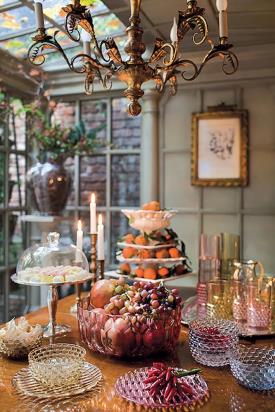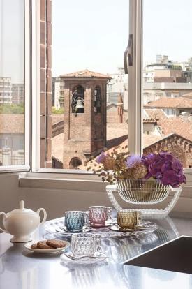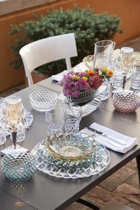 Une riche gamme d’assiettes, de plateaux, de verres, de bols, de carafes, de tasses à café et sucriers. La particularité de cette collection vient du fait que chaque modèle présente un motif différent s'inspirant aux moules qui servaient autrefois à faire les gélatines. Les superpositions des assiettes et les assortiments de couleurs créent un ensemble extroverti mais discret, à la fois créatif et sophistiqué.