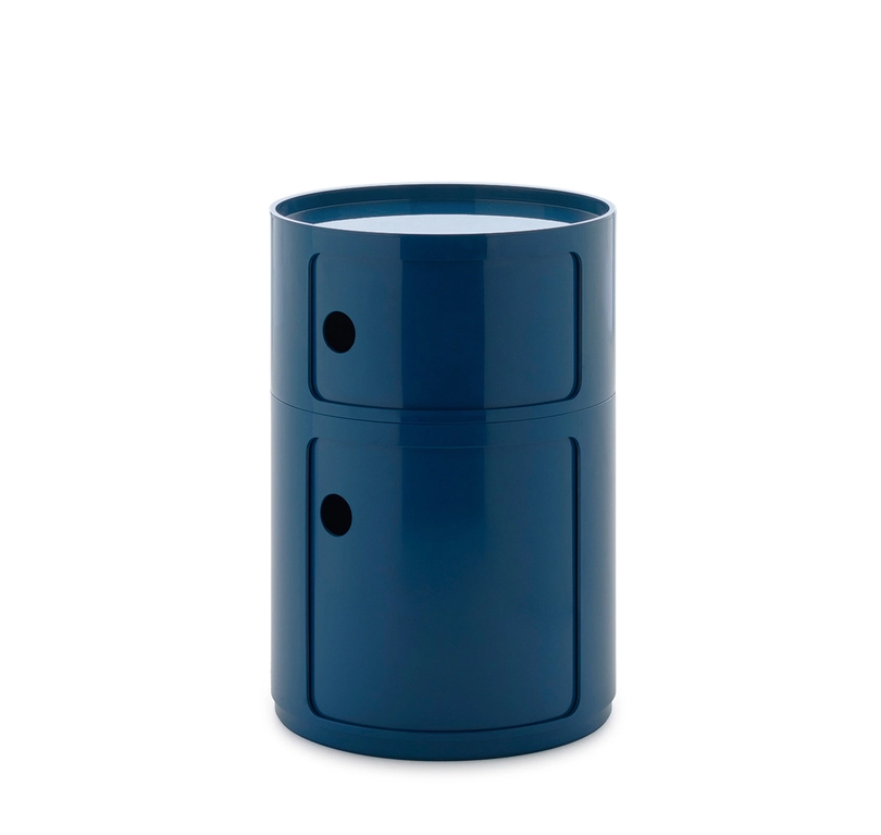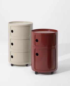 Présentés ici dans une version ronde de 42 cm, les Componibili d’Anna Castelli Ferrieri apparaissent sous un jour totalement nouveau. Une nouvelle apparence obtenue en utilisant un nouveau moule industriel qui met en valeur sa qualité et son esthétique. La palette s’enrichit de coloris déjà proposés pour la version de 32 cm, auxquels s’ajoutent des nuances inédites, où le style contemporain dialogue avec d’élégantes références au passé. Disponible avec 2 ou 3 éléments indissociables, cette nouveauté représente une évolution technique prête à valoriser un classique du catalogue. Disponibles dans les couleurs : bordeaux, gris tourterelle, orange, bleu pétrole, vert et blanc