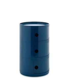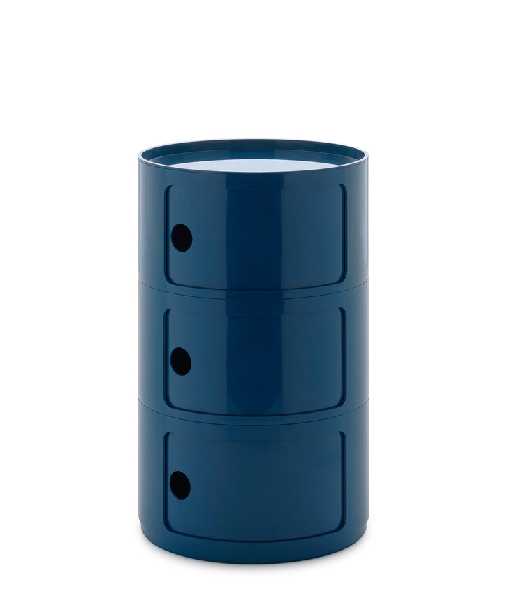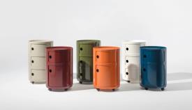 Présentés ici dans une version ronde de 42 cm, les Componibili d’Anna Castelli Ferrieri apparaissent sous un jour totalement nouveau. Une nouvelle apparence obtenue en utilisant un nouveau moule industriel qui met en valeur sa qualité et son esthétique. La palette s’enrichit de coloris déjà proposés pour la version de 32 cm, auxquels s’ajoutent des nuances inédites, où le style contemporain dialogue avec d’élégantes références au passé. Disponible avec 2 ou 3 éléments indissociables, cette nouveauté représente une évolution technique prête à valoriser un classique du catalogue. Disponibles dans les couleurs : bordeaux, gris tourterelle, orange, bleu pétrole, vert et blanc