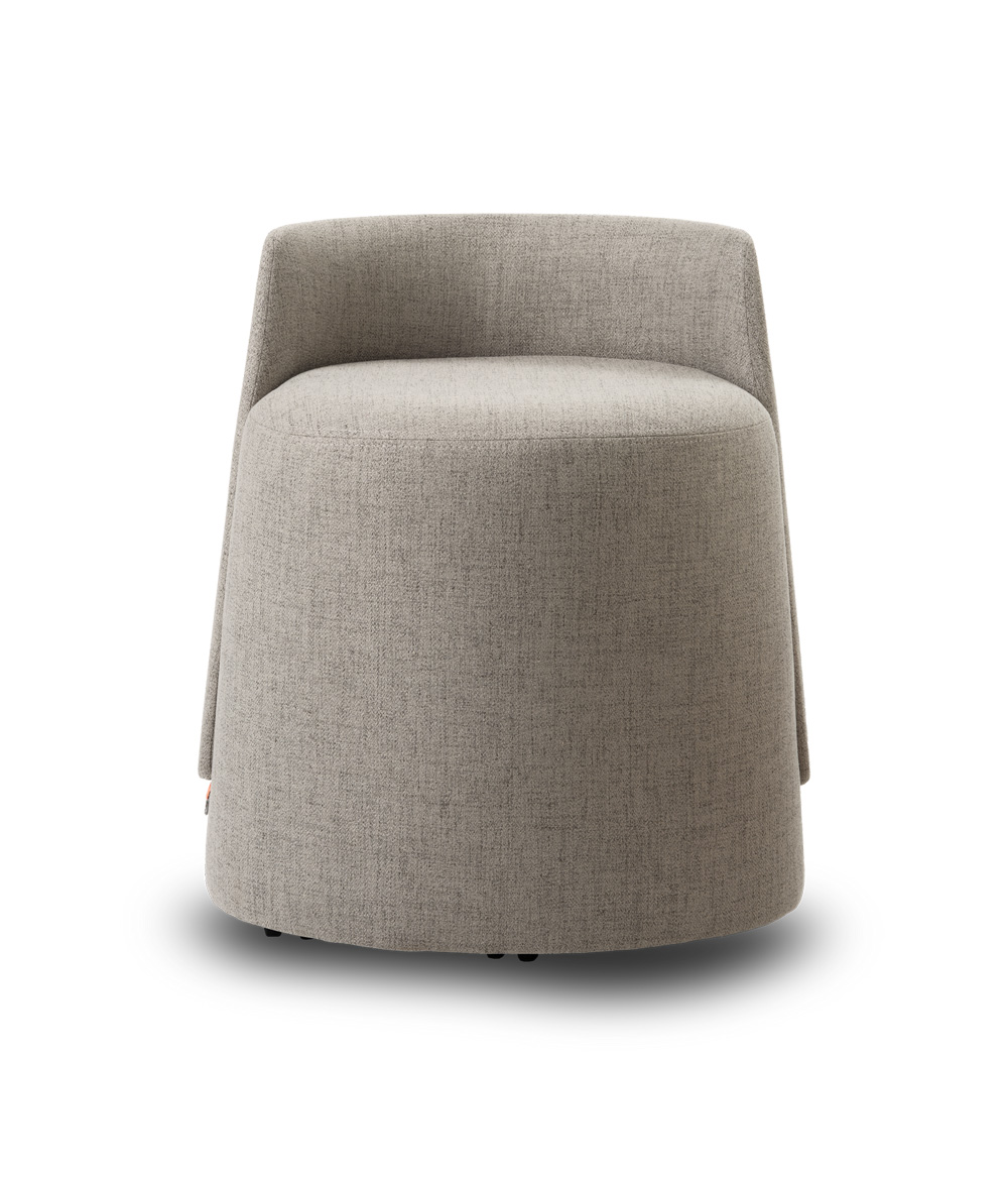 Le nouveau pouf de la famille Bolero est un véritable polyvalent. Que ce soit au bureau, en télétravail, à table ou dans une chambre d'hôtel – il s'adapte partout rapidement en tant qu'assise d'appoint ou siège flexible. Cinq roulettes dissimulées à la base en font le partenaire idéal pour des environnements de vie et de travail dynamiques.