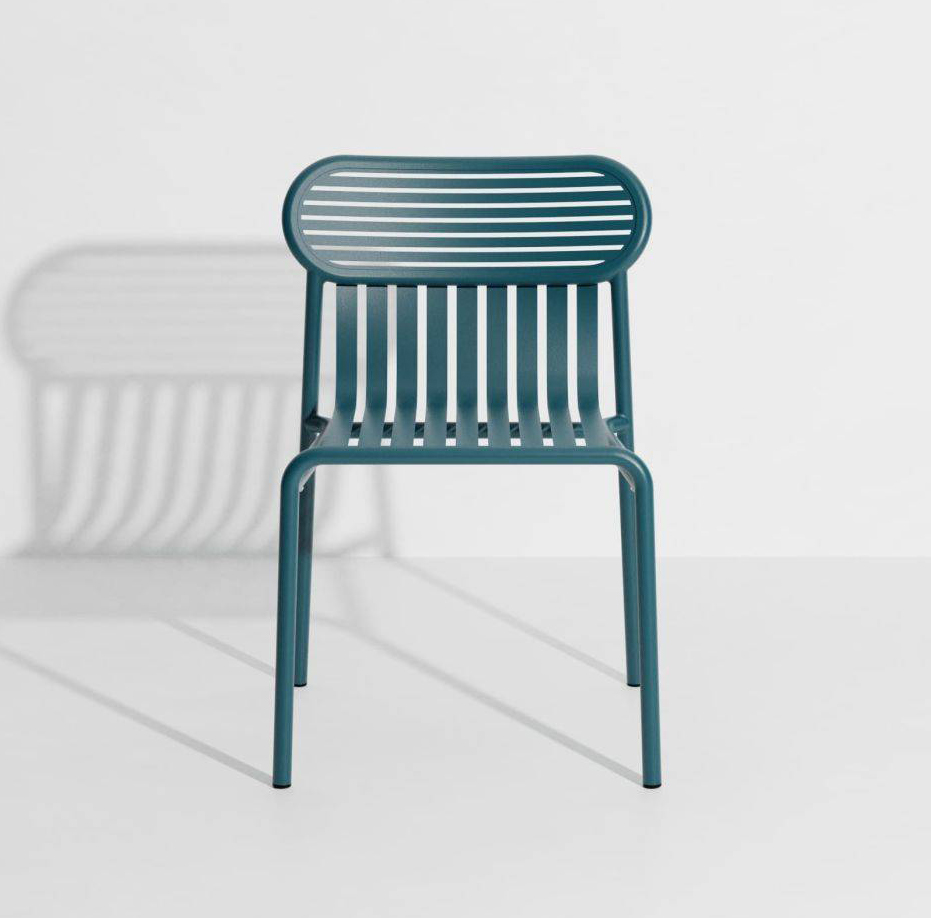 Cette chaise de jardin de la collection WEEK-END du Studio BRICHETZIEGLER mêle esthétisme et praticité. La forme ovale et cernée des assises dessine les dossiers et devient un signe graphique.