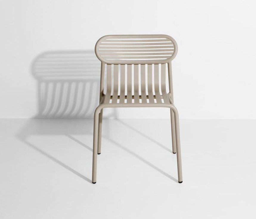 Cette chaise de jardin de la collection WEEK-END du Studio BRICHETZIEGLER mêle esthétisme et praticité. La forme ovale et cernée des assises dessine les dossiers et devient un signe graphique.