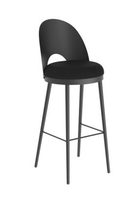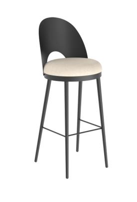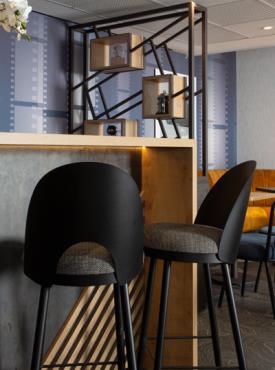 La chaise Lili bar associe l'élégance et le confort. Elancée, elle est le mariage harmonieux entre acier et tissu. Son dossier percé permet une prise en main facile.