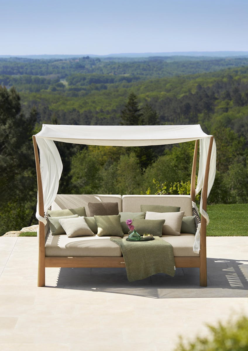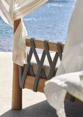 Notre Tuskany offre une expérience de détente en plein air luxueuse, conçue avec une structure en teck robuste et des dossiers réglables qui peuvent être ajustés sans effort avec un simple levier. Les coussins moelleux et à séchage rapide offrent un confort ultime, tandis que les rideaux en option ajoutent une couche supplémentaire d'intimité et d'ombre, créant une atmosphère chaleureuse et accueillante.