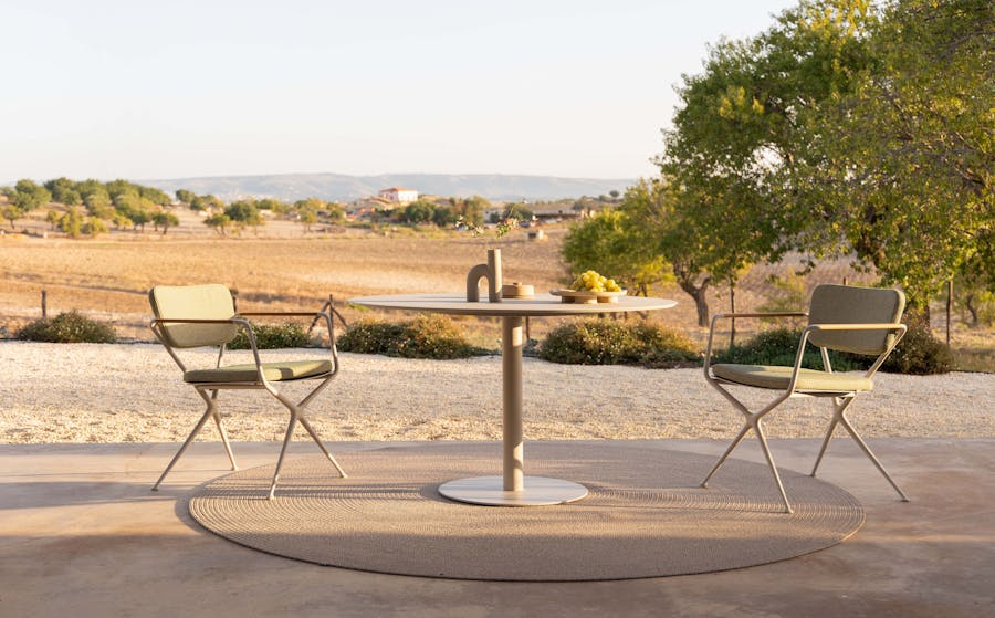 Les plateaux se déclinent en céramique, pierre de lave émaillée et teck, pour répondre aux exigences esthétiques comme pratiques. Au cœur de la gamme : la table à manger Butler, avec son pied central offrant un confort optimal au niveau des jambes, sans compromettre l’harmonie de la silhouette.